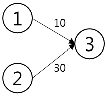 위 상황에서 3건물을 짓는데 1, 2건물이 필요하고 1 건물을 짓을때는 10시간이 걸리고 2건물을 지을때는 30시간이 걸린다.