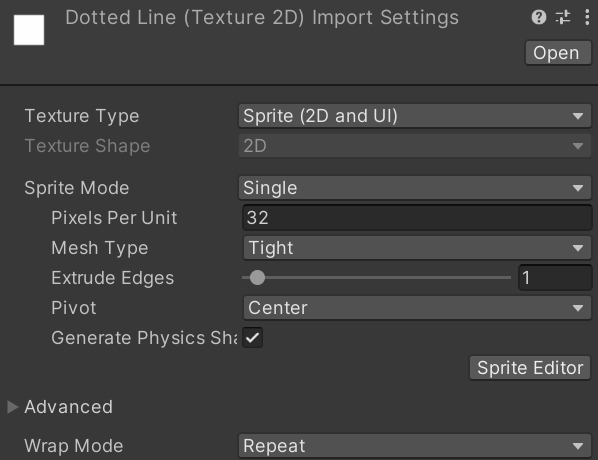 스프라이트 설정으로 돌아가서 WrapMode를 Repeat로 바꿔준다.
