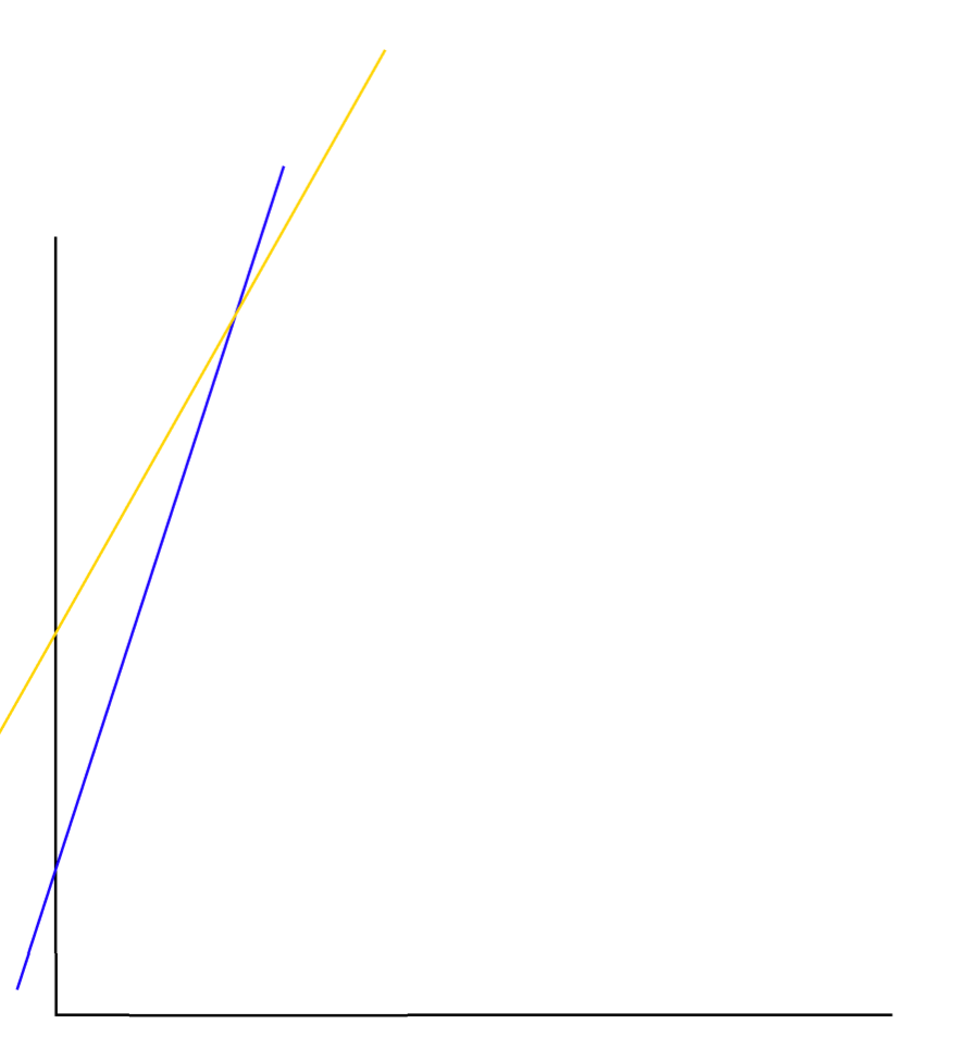 노란 선은 빨간 선보다 더 낮은 x좌표에서 부터 시작해 더 낮은 y좌표를 제공한다.