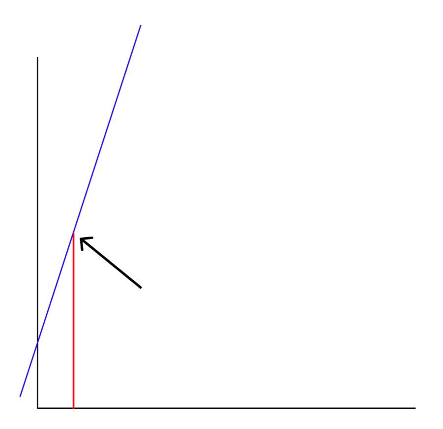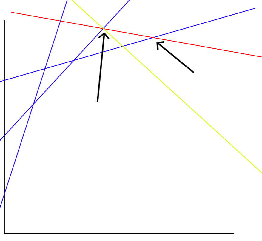 하지만 새로운 선인 노란선과 빨간선이 맞닿은 x좌표는 오른 화살표 보다 왼쪽에 있다.