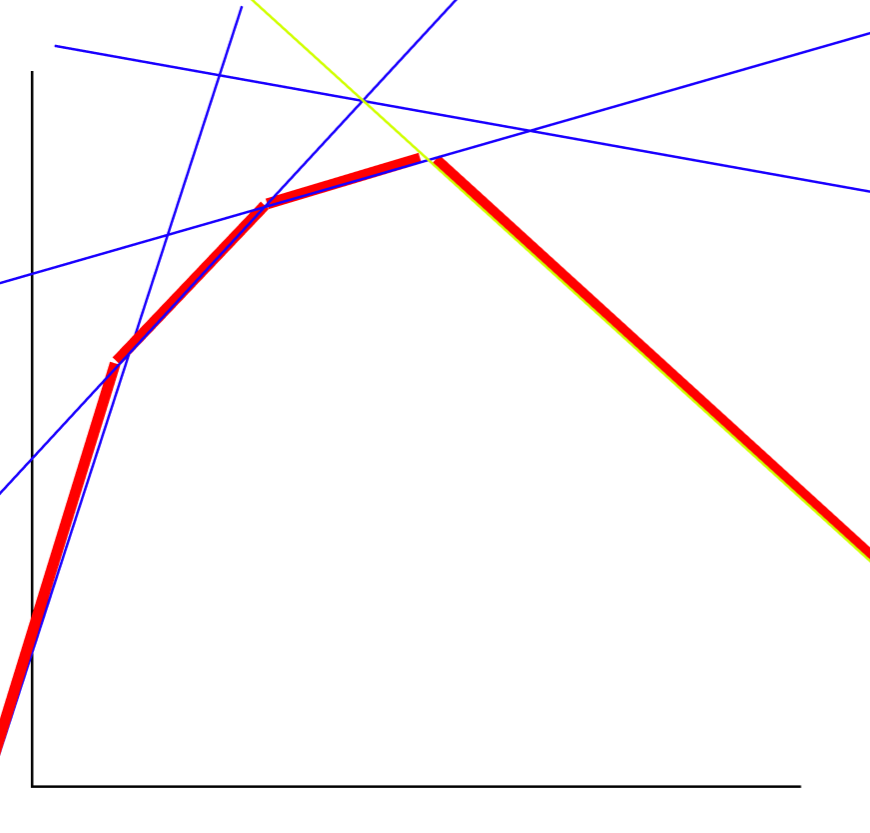 가장 최근에 추가한 선과 새로 추가할 선과의 교점인 x좌표가 작다면 제거하고